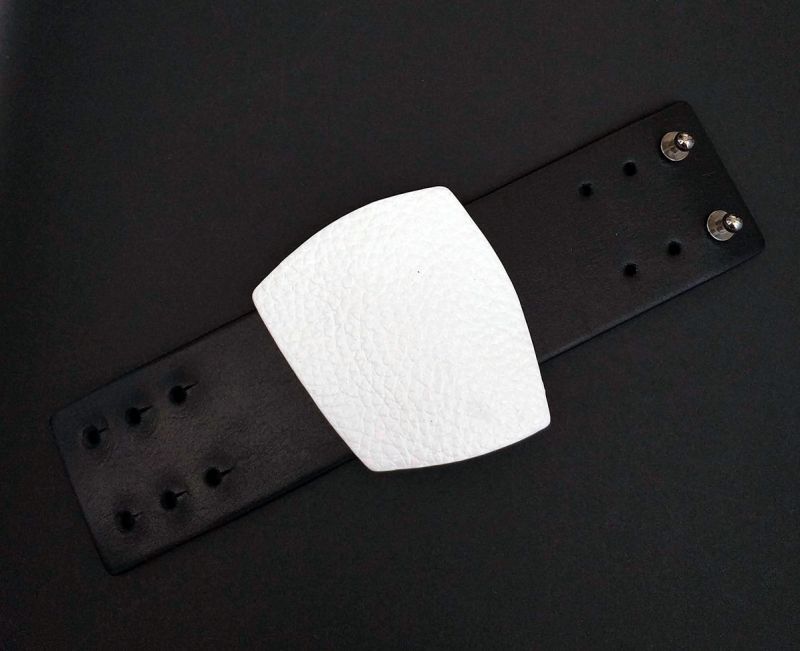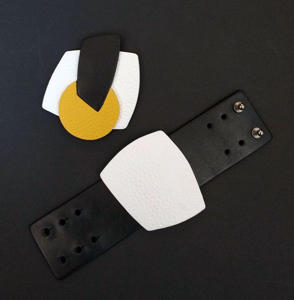 Брошь из кожи белый жёлтый чёрный арт 1251 |