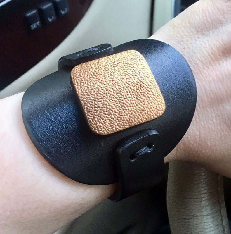 Браслет ДИСК - КВАДРАТ из натуральной кожи.