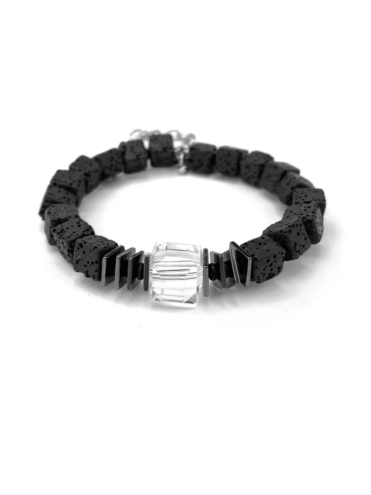 Браслет ХРУСТАЛЬ ГЕМАТИТ ЛАВА серебро чёрный арт 61202