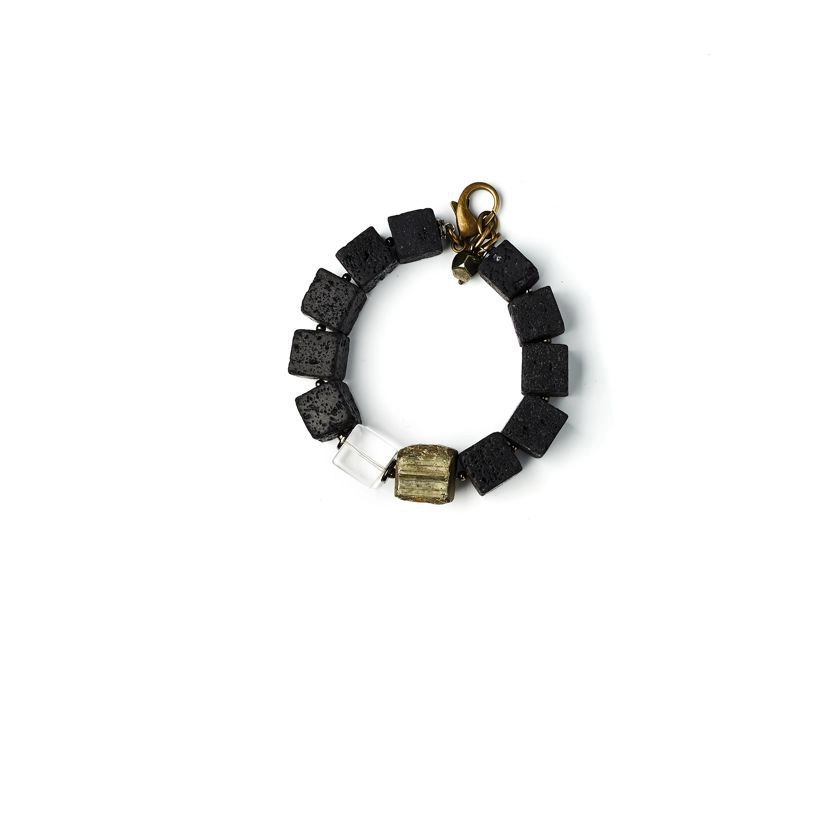 Браслет из вулканической лавы, хрусталя и пирита.