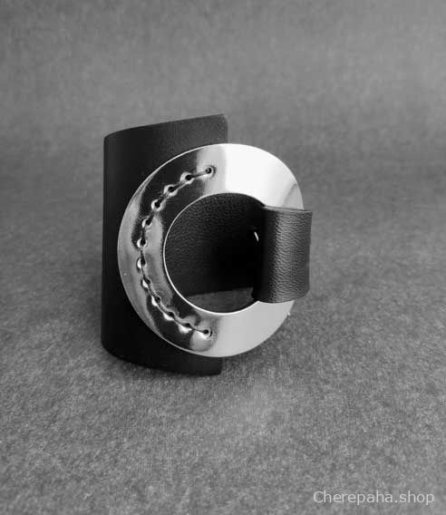 Браслет ПРЯЖКА КРУГ из натуральной кожи, ручная работа.