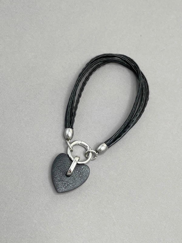 Браслет из кожи СЕРДЕЧКО чёрный арт 43601