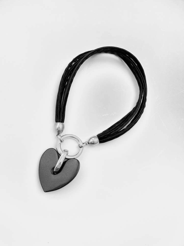 Кулон из кожи СЕРДЕЧКО фиалковый лак чёрный арт 43503 |