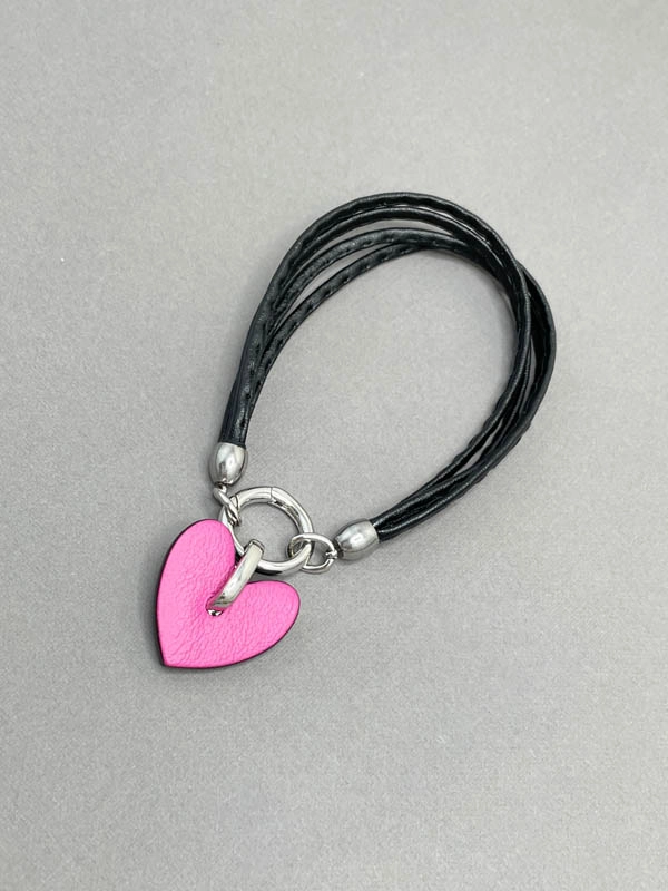 Браслет из кожи СЕРДЕЧКО фуксия чёрный арт 43602