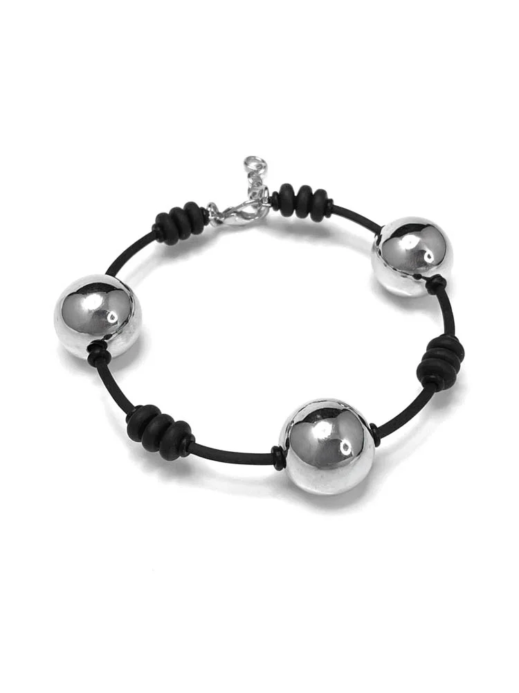 Браслет СЕРЕБРЯНЫЕ ШАРЫ чёрный арт 62901