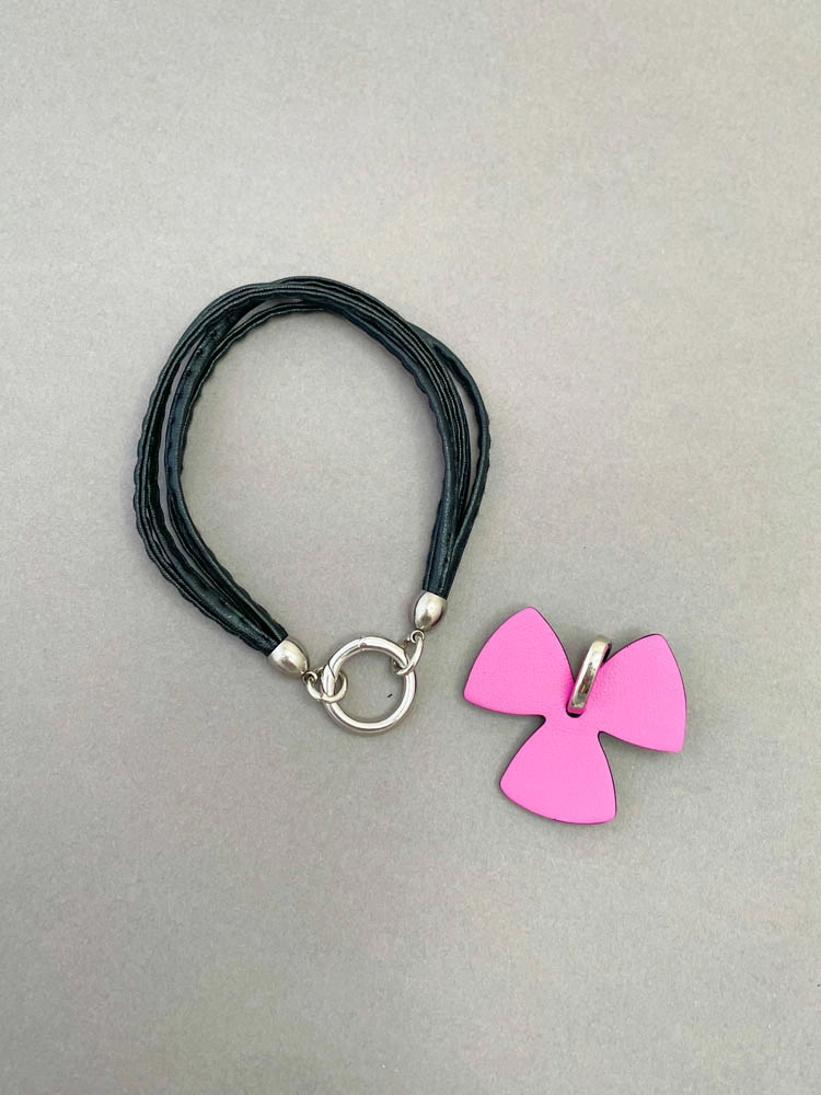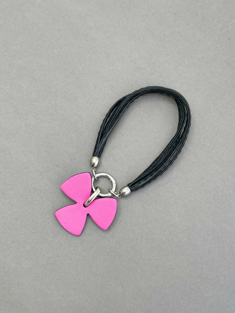 Браслет из кожи ТРИЛИСТНИК фуксия чёрный арт 40505