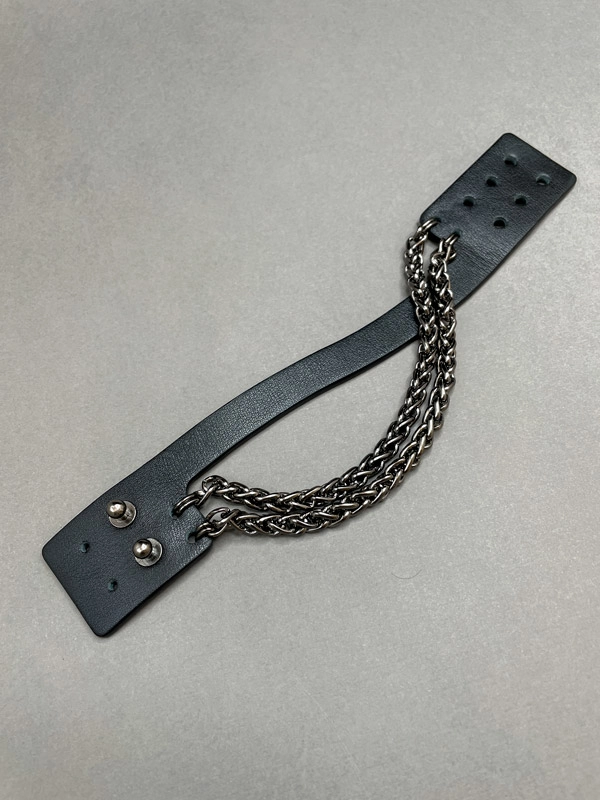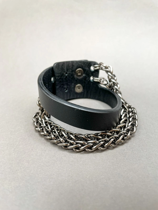 Браслет из кожи ЦЕПЬ чёрный арт 40001