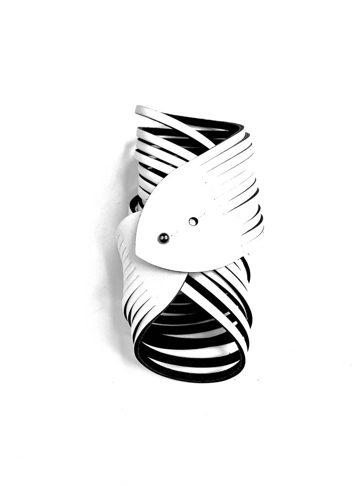 Трансформер ЧОКЕР-БРАСЛЕТ широкий из кожи белый чёрный