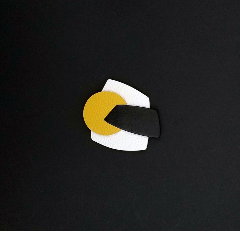 Брошь из кожи белый жёлтый чёрный арт 1251