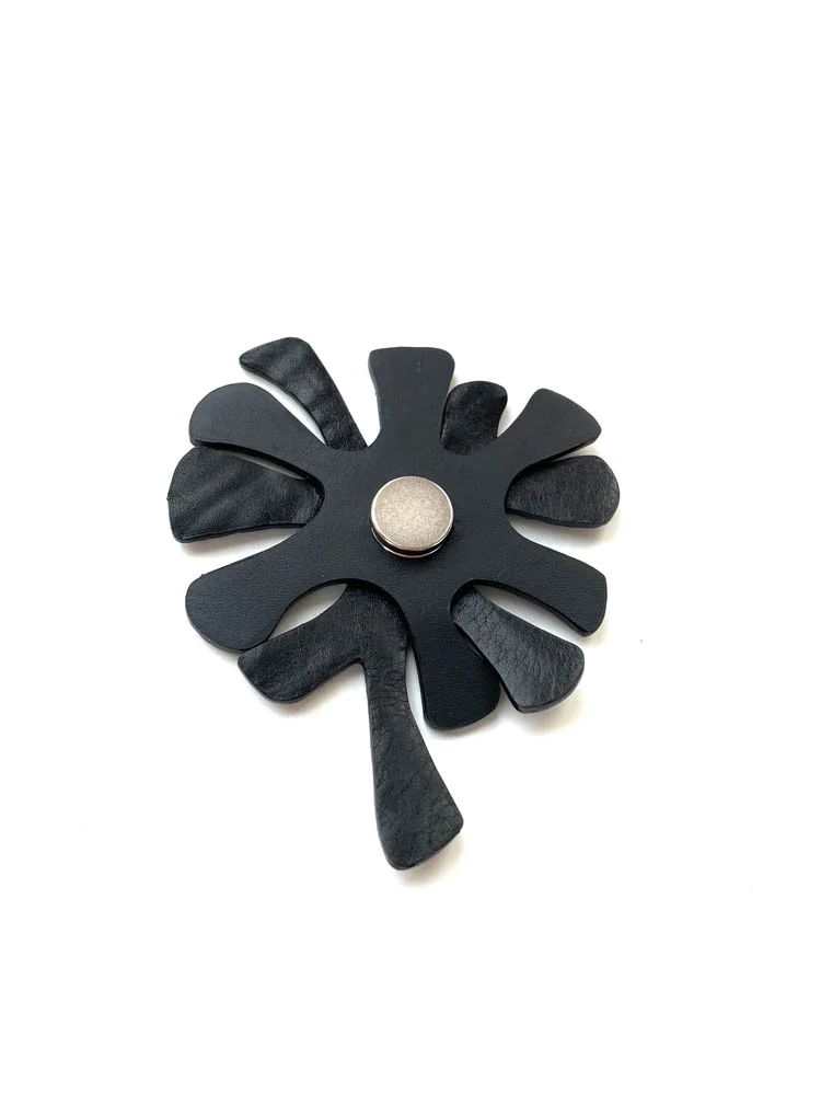 Брошь КОРАЛЛ из чёрной фактурной кожи, крепление магнитное