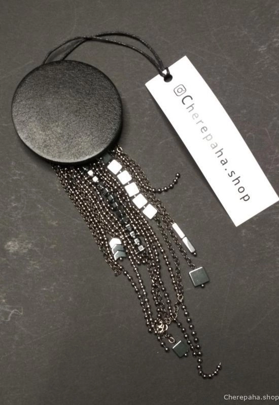 Брошь ЦЕПИ - натуральная кожа, гематит + ювелирный сплав