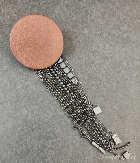 Брошь ЦЕПИ - натуральная кожа, гематит + ювелирный сплав