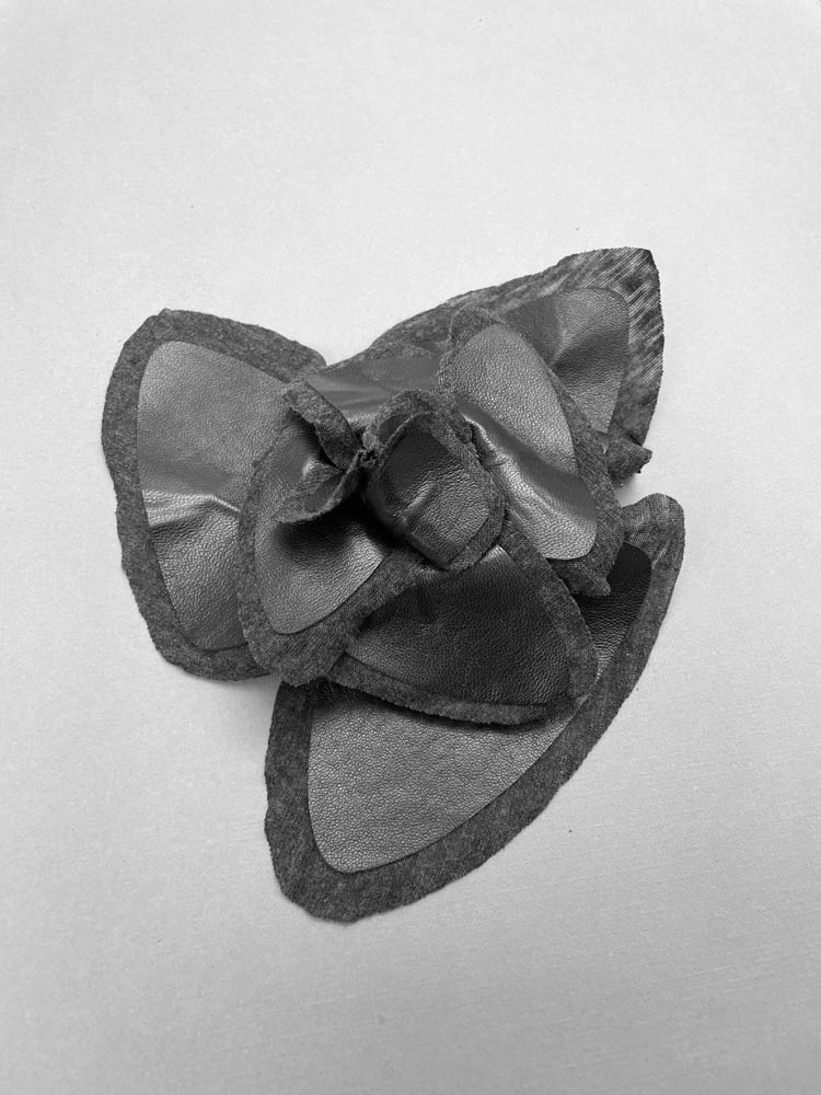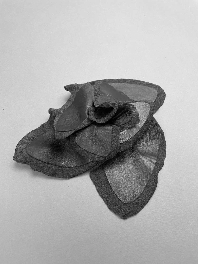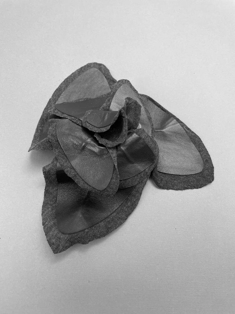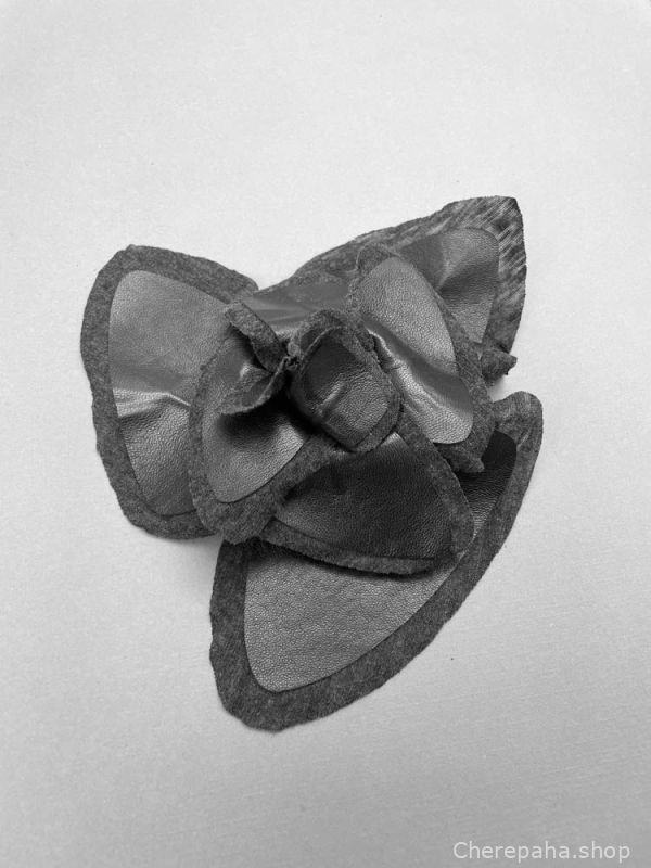 Брошь из кожи ЦВЕТОК чёрный серый арт 24512