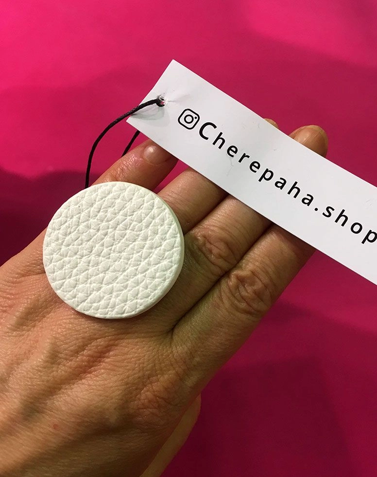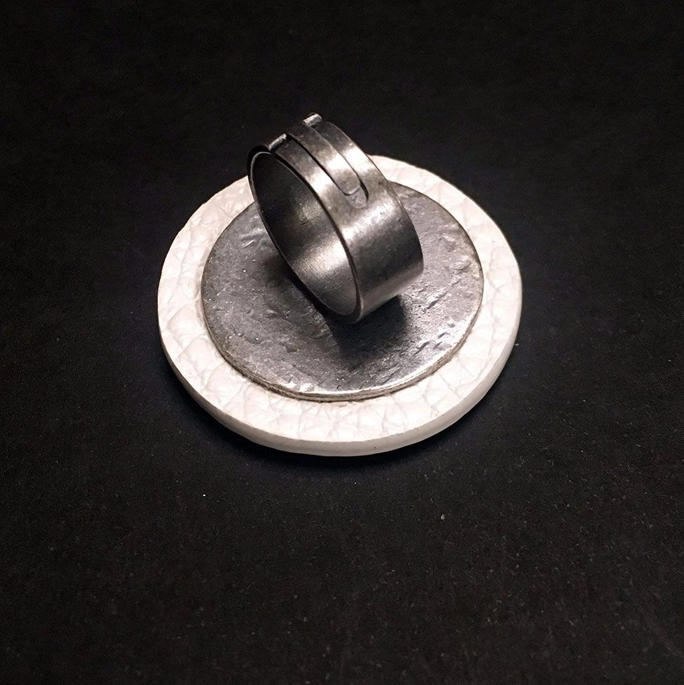 Кольцо из кожи КРУГ из ювелирного сплава серебрение 12 мкм.