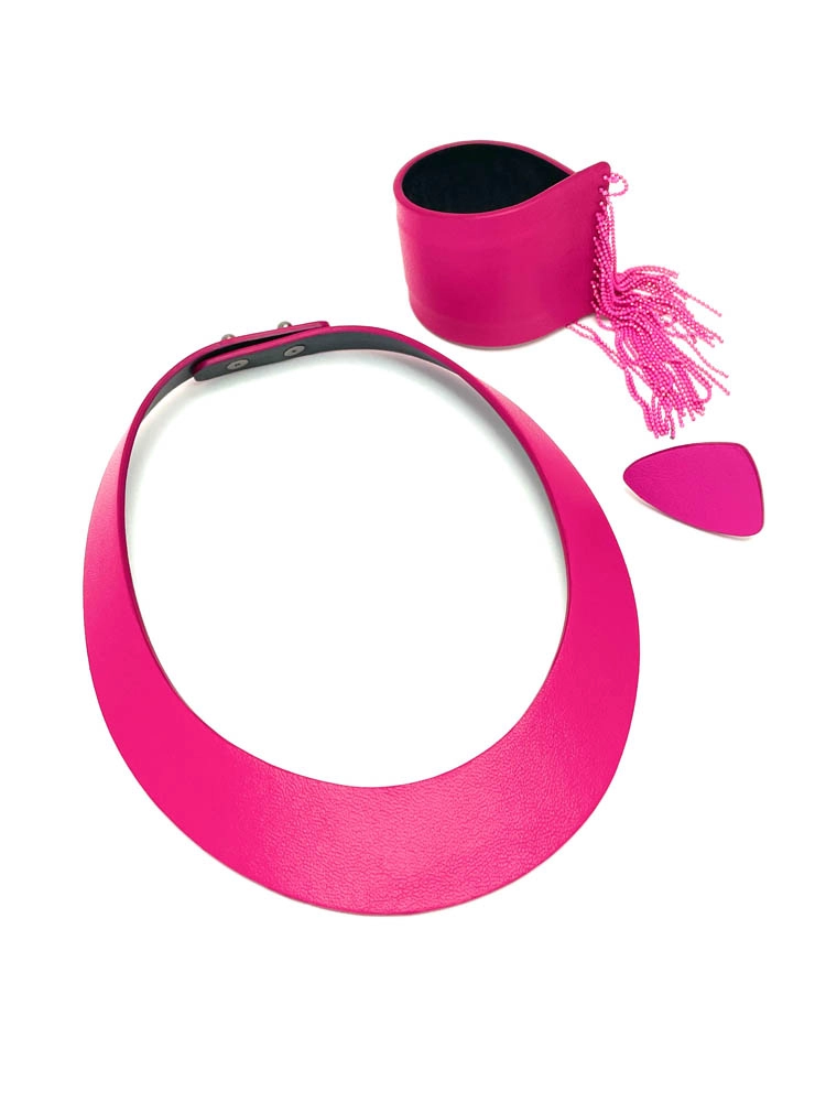 Кольцо из кожи ЛЕПЕСТОК M фуксия чёрный арт 44702