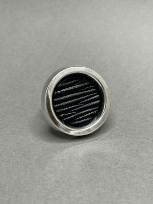 Кольцо ПАН чёрный, вставка натуральная кожа