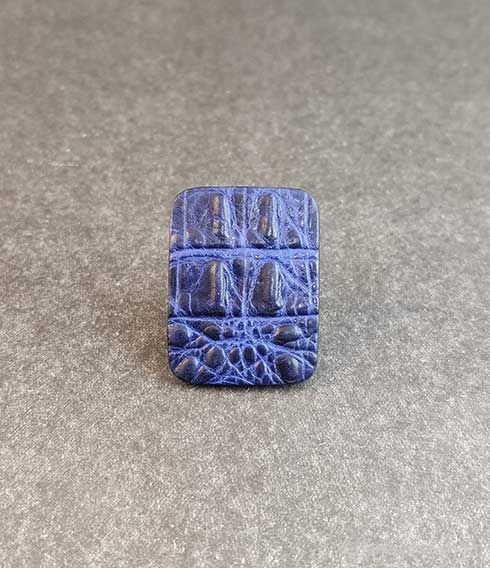 Кольцо кожаное ПРЯМОУГОЛЬНИК вертикальный, основание из ювелирного сплава серебрение 12 мкм.