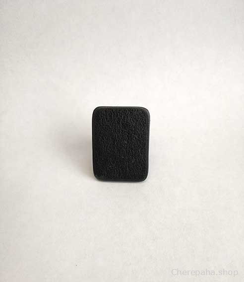 Кольцо кожаное ПРЯМОУГОЛЬНИК вертикальный , основание из мельхиора покрытие серебрение 12 мкм.