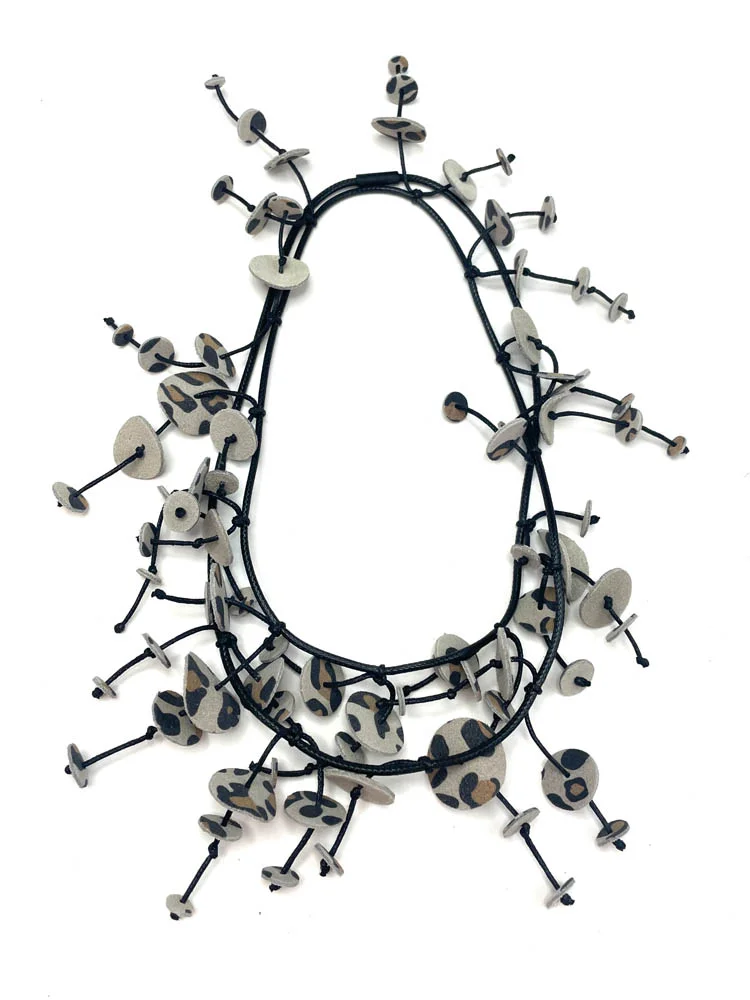 Бусы ГИПСОФИЛА из замши леопардовый принт серый чёрный