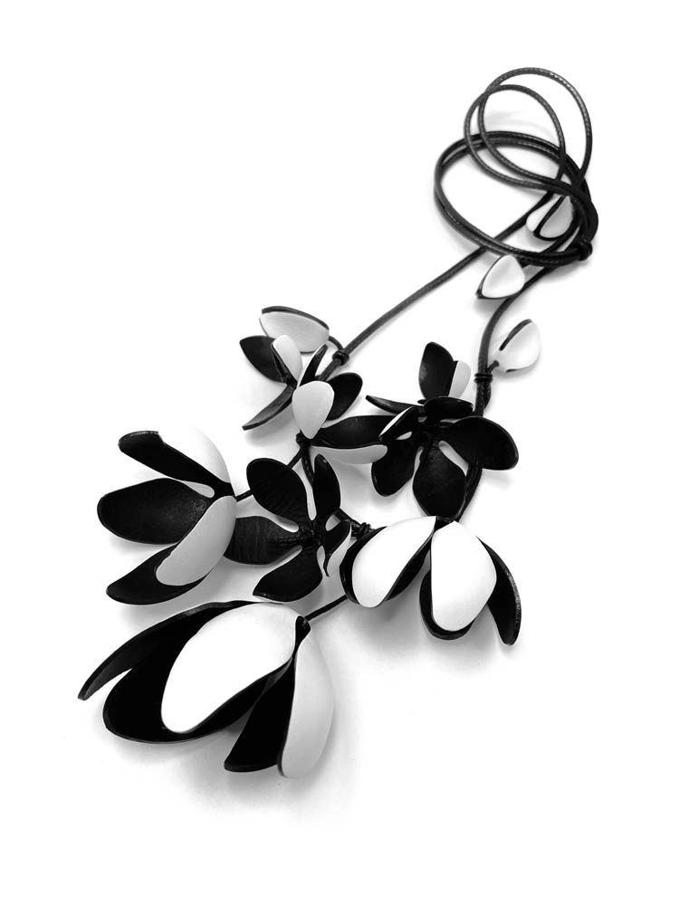 Бусы из кожи МАГНОЛИЯ белый чёрный арт 35006
