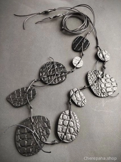 Бусы кожаные ОБЛАКО трансформируется в пояс.