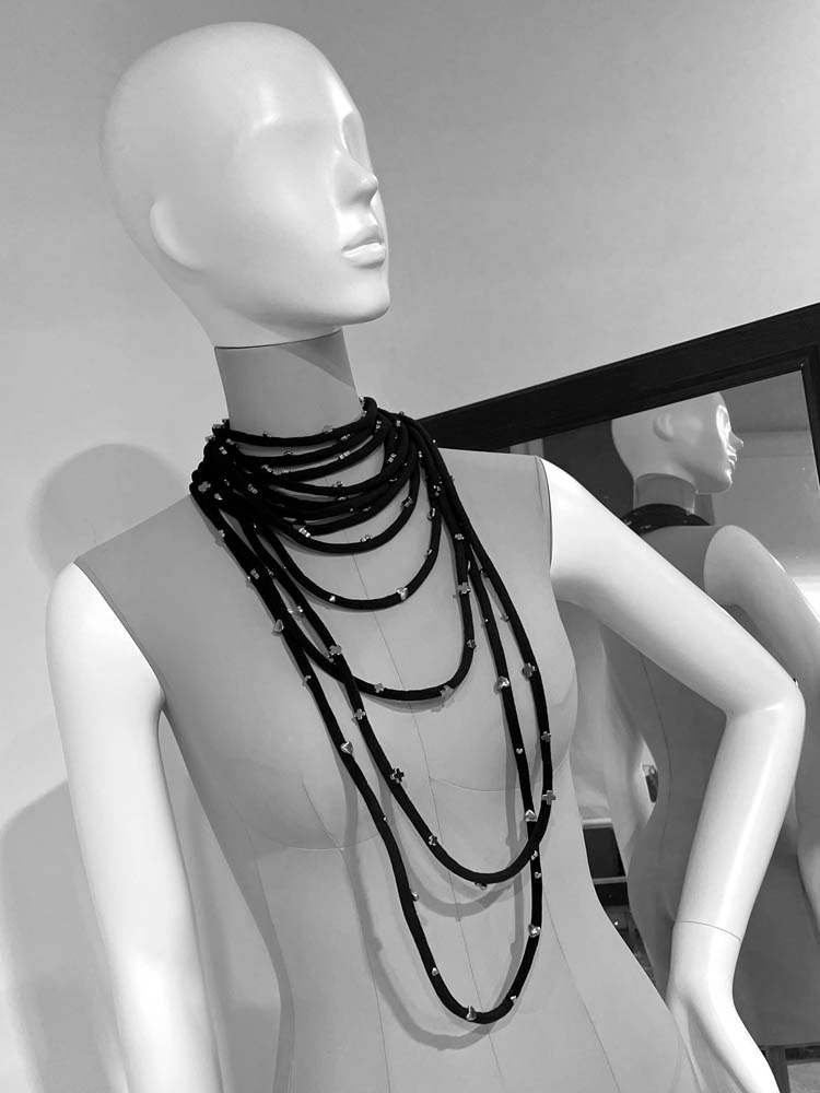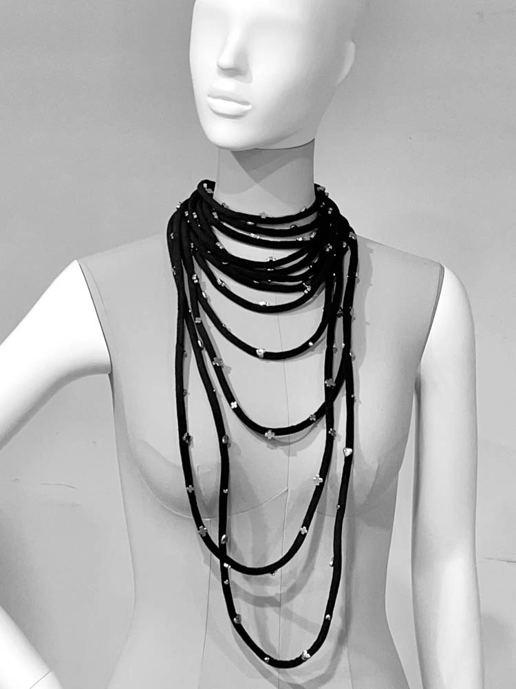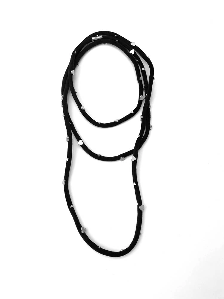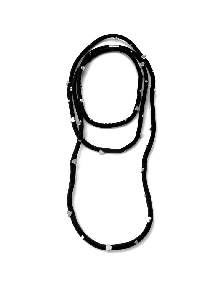 Бусы бархатные СЕРДЕЧКИ чёрный вышивка натуральным камнем цвет серебро