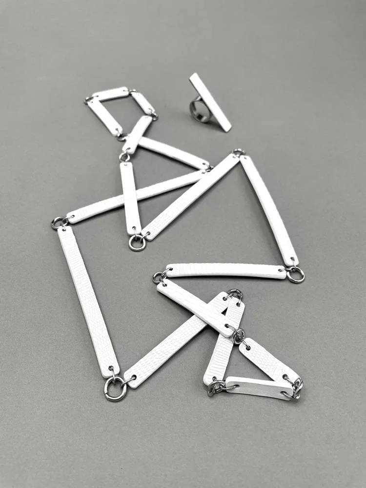 Бусы СТИК из натуральной кожи белого цвета
