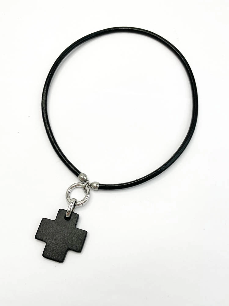 Чокер из кожи КРЕСТ M, подвес съёмный