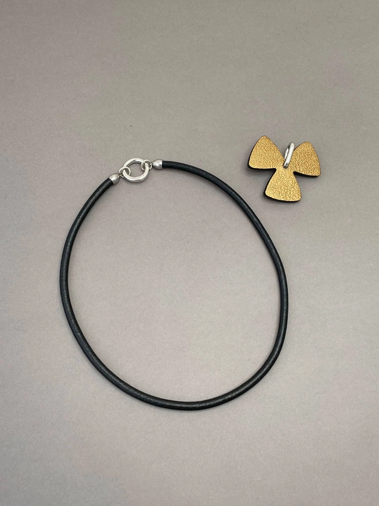 Чокер из кожи ТРИЛИСТНИК бронза чёрный арт 38607