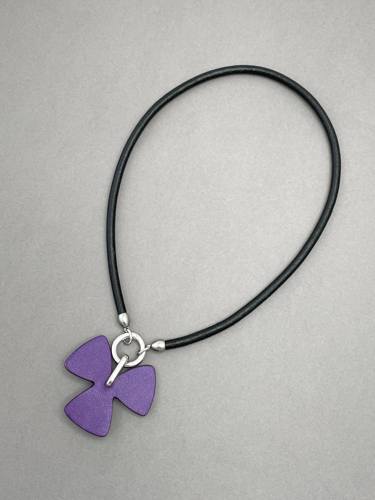 Чокер из кожи ТРИЛИСТНИК фиолетовый чёрный арт 38608