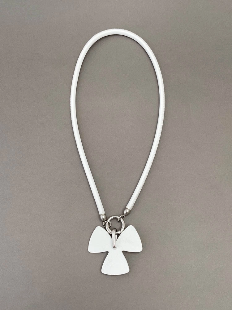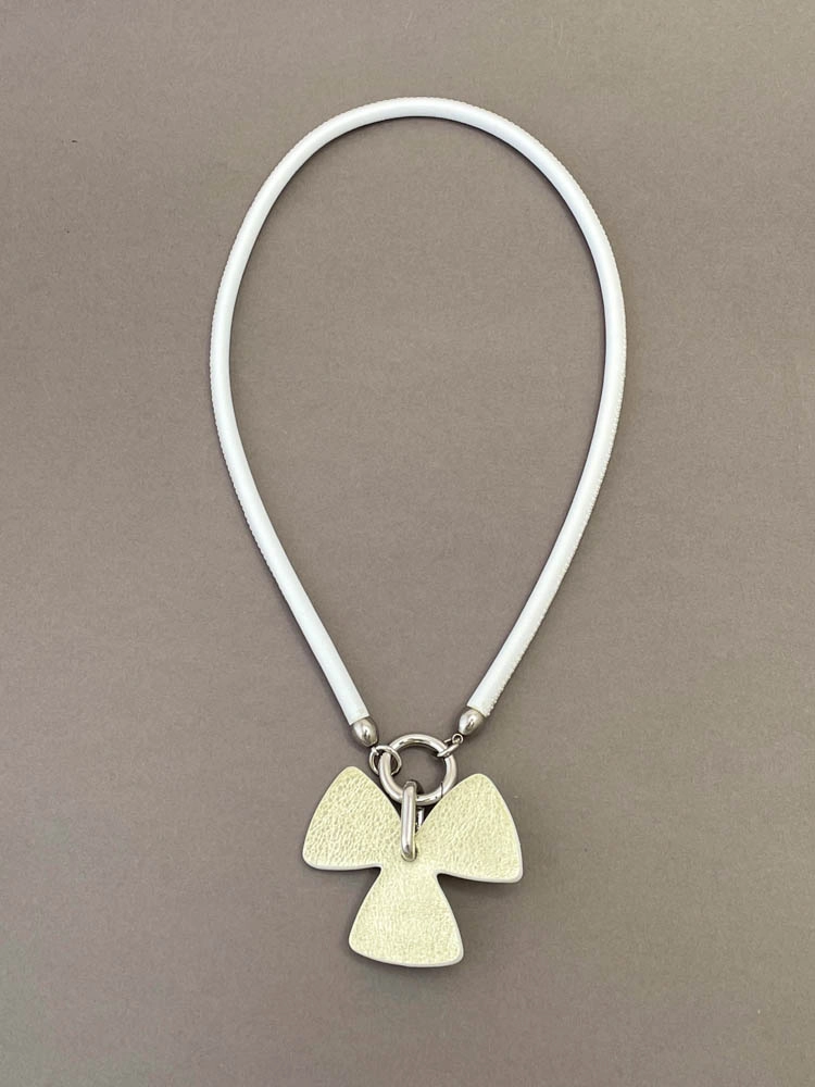 Чокер из кожи ТРИЛИСТНИК лимонное золото белый арт 38604