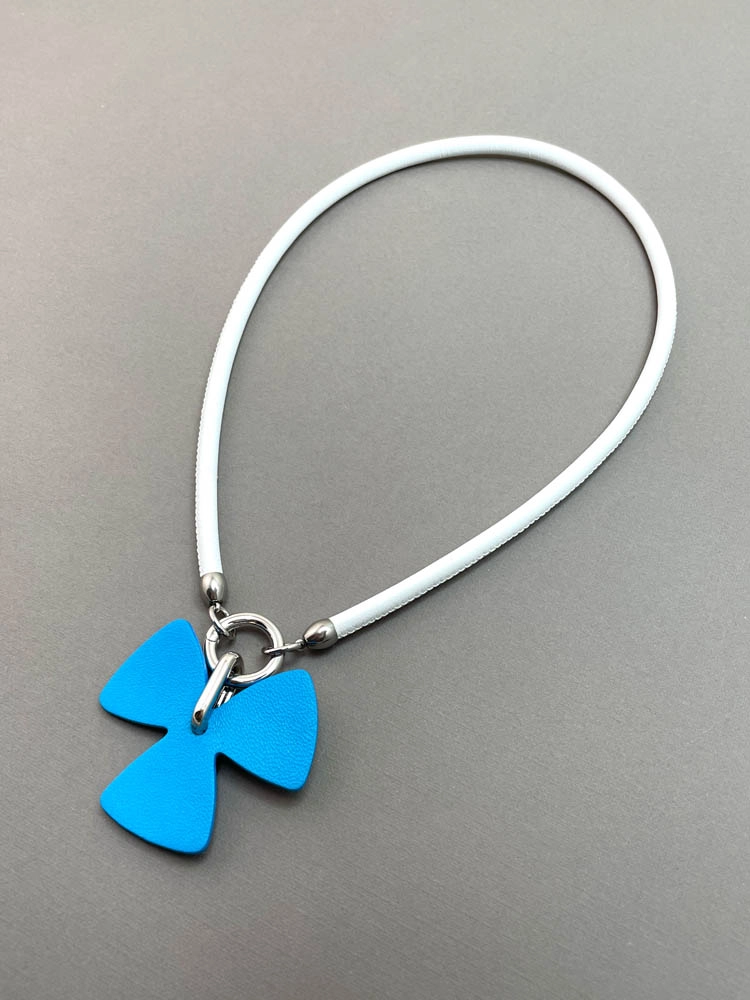 Чокер из кожи ТРИЛИСТНИК небесно-голубой арт 38609