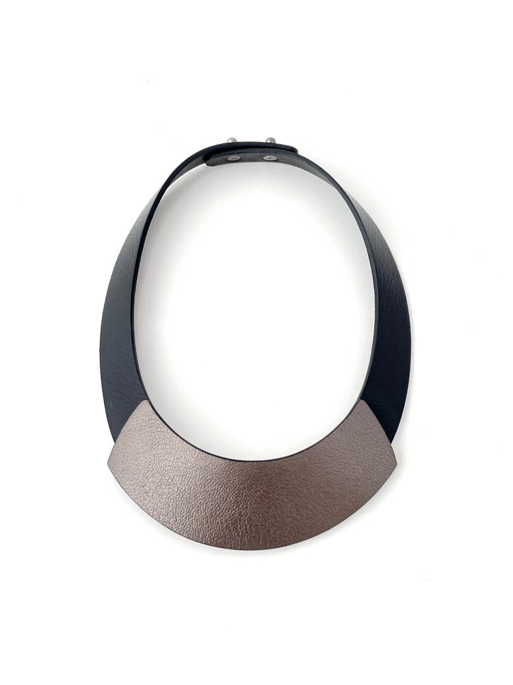 Гривна из кожи ЛЭЙ тёмное серебро чёрный