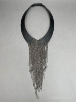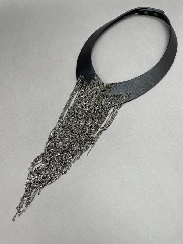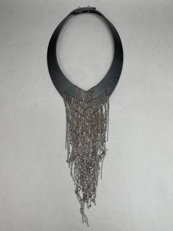 Гривна из кожи ВИКТОРИЯ чёрный тёмное серебро арт 39804