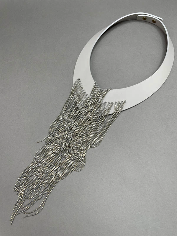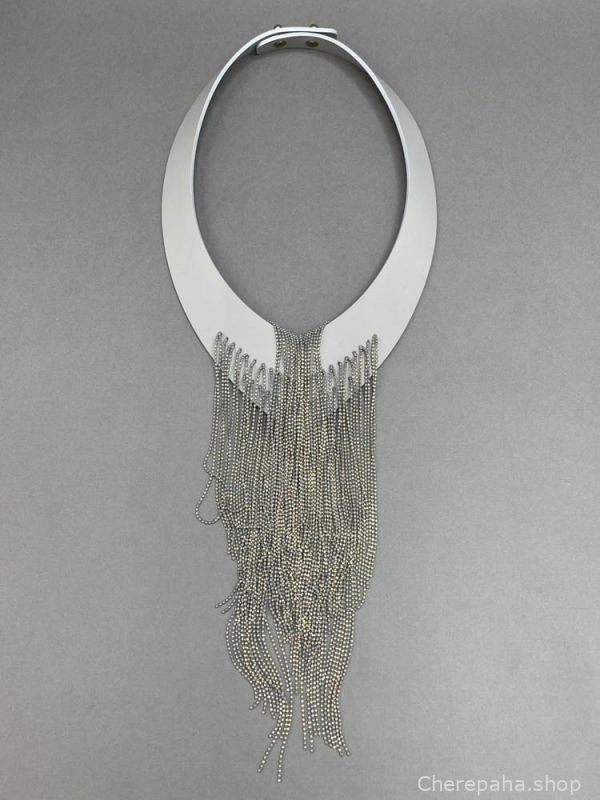 Гривна из кожи ВИКТОРИЯ серый светлый золотистый арт 39805