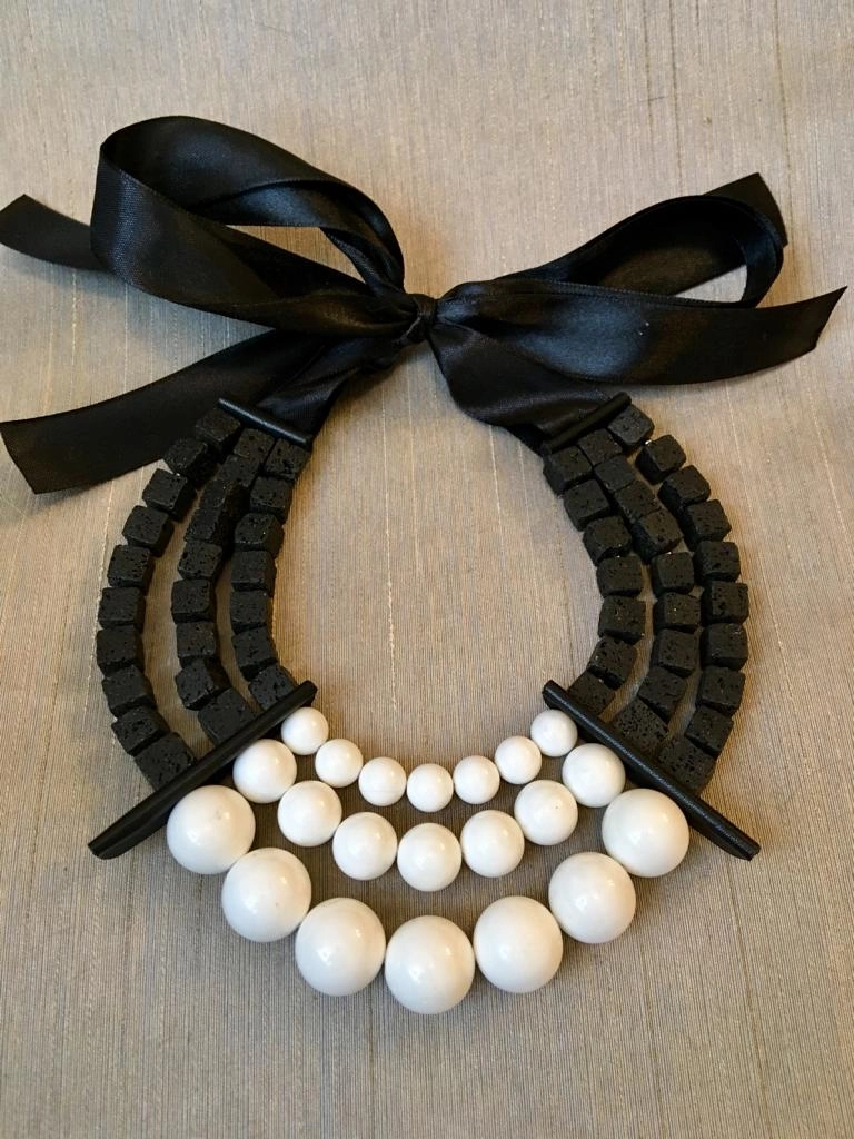 Трехрядное Колье из раковины и вулканической лавы.