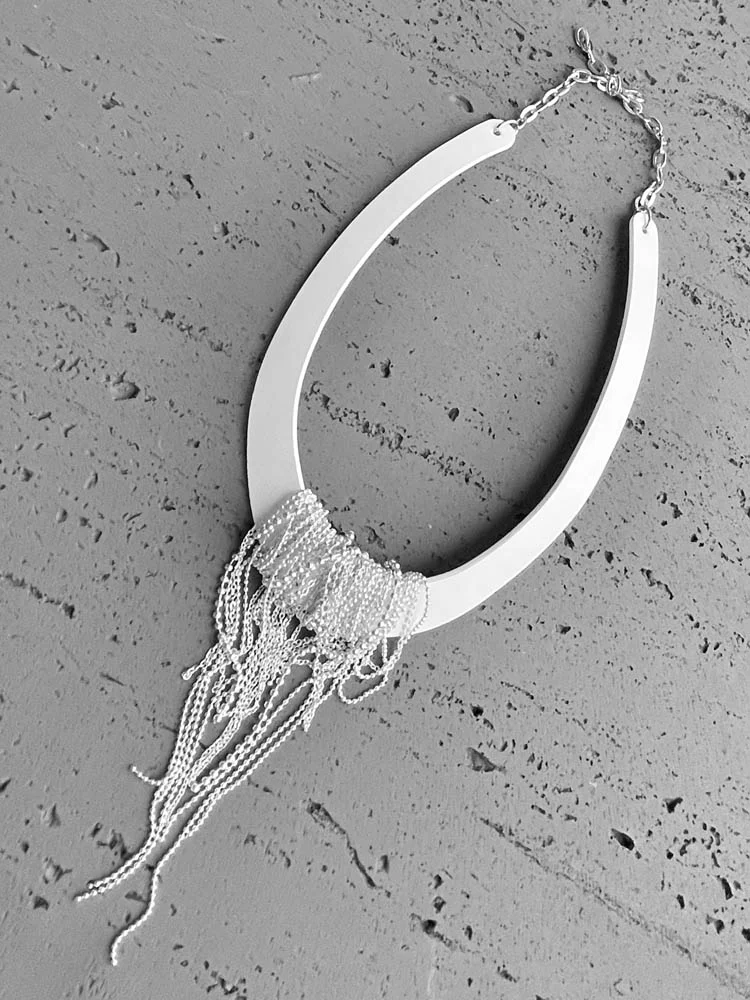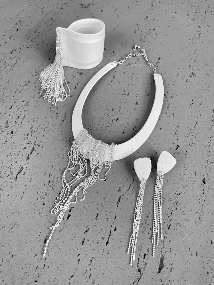Колье БРИЗ из белой кожи с цепочками цвет белое серебро