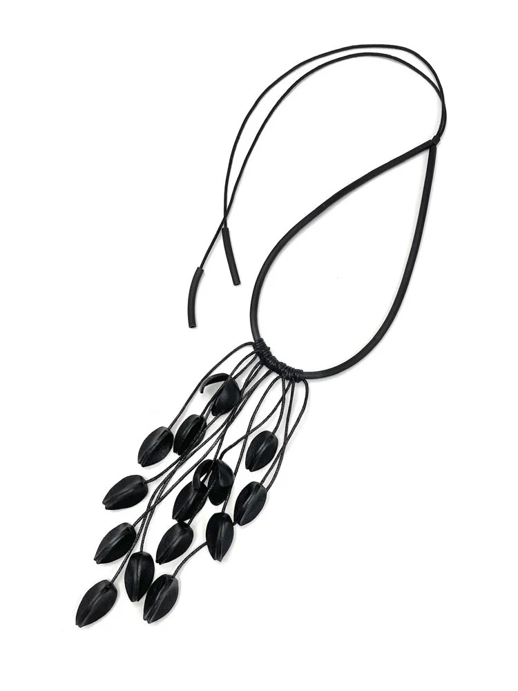 Колье из кожи БУТОНЫ чёрный арт 57901