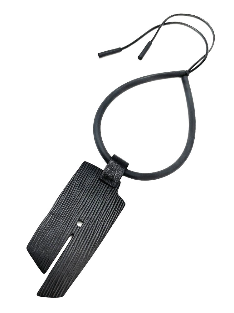 Колье из кожи ЧИП чёрный фактурный арт 57302
