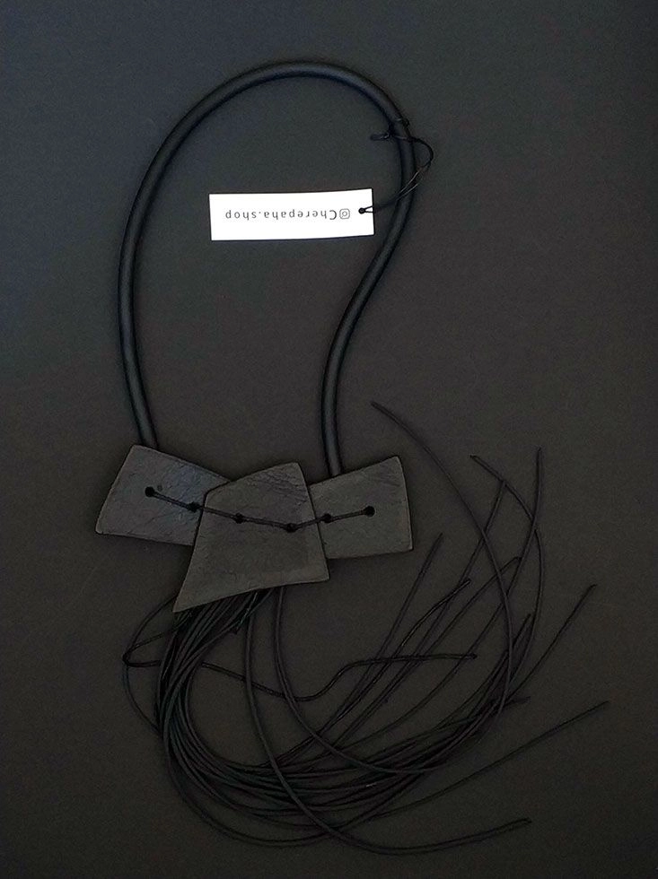 Колье из натуральной кожи с каучуком.