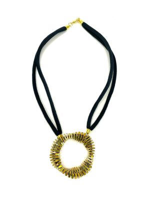 Колье из гематита на шнуре из чёрного бархата