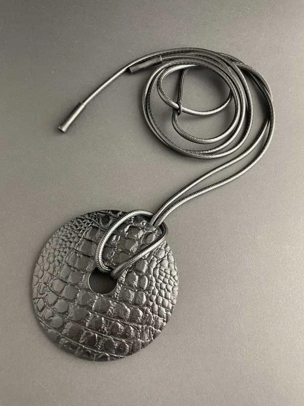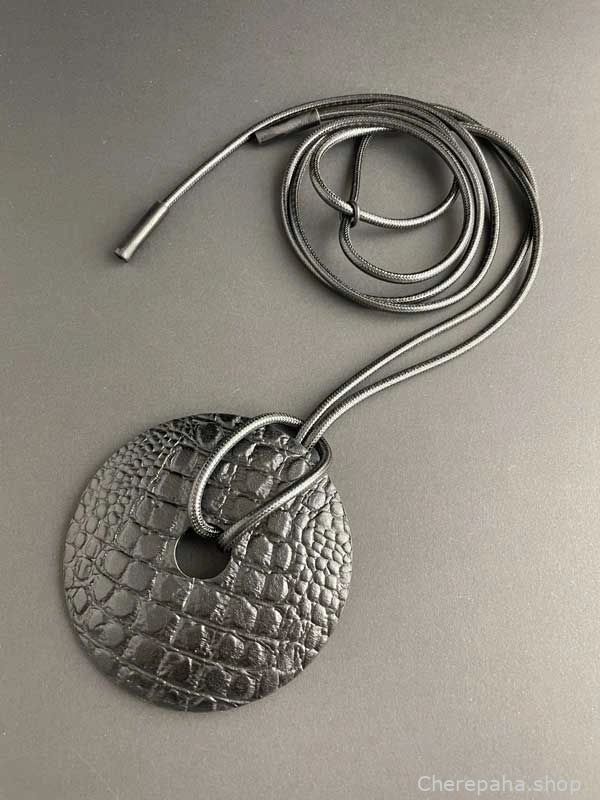 Колье кожаное ДИСК чёрный крокодил арт 1939