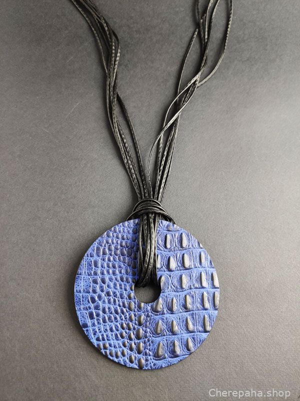 Колье из кожи ДИСК синий крокодил_чёрный арт 1943