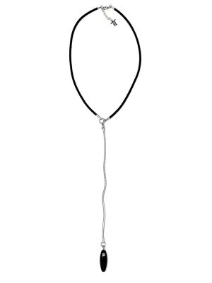 Колье КАПЛЯ чёрный агат на чёрном шнуре