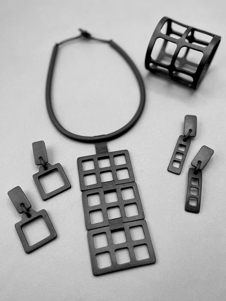 Серьги из кожи КЛЕТКА S чёрный арт 45701 |