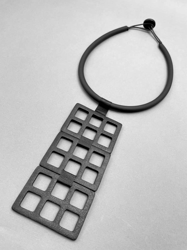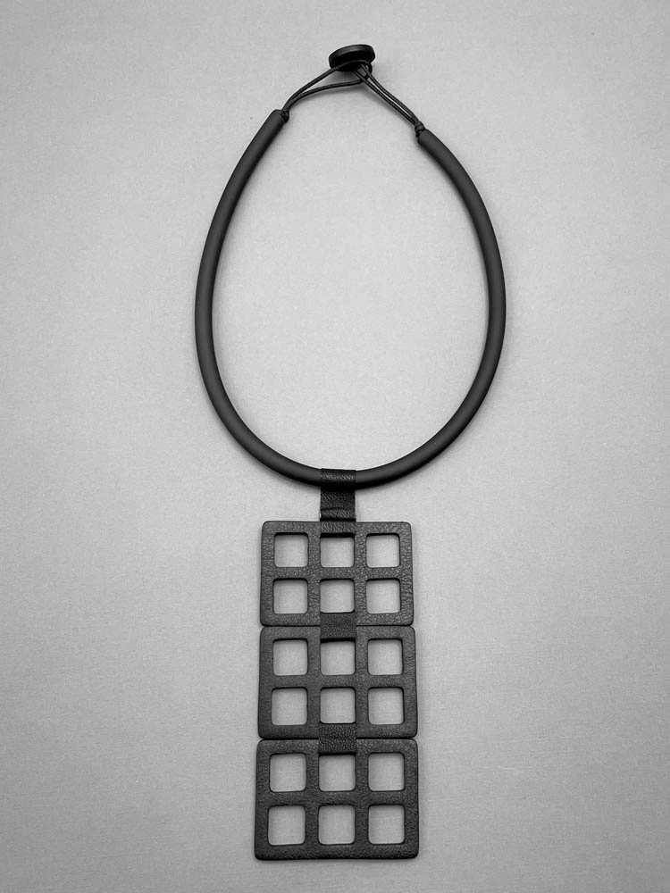 Колье из кожи КЛЕТКА чёрный арт 46001