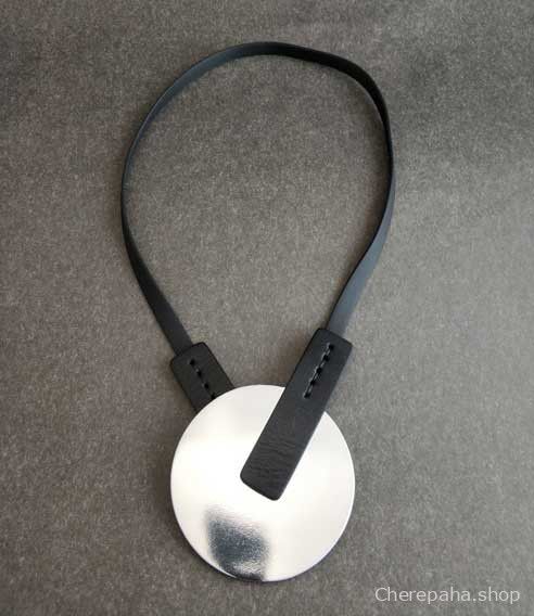 Колье из кожи КНОПКА КРУГ серебро глянец арт 2261
