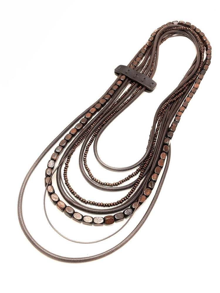 Колье из натуральной кожи с каучуком и акриловым шнуром.