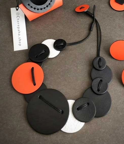 Серьги из кожи белый гладкий_чёрный арт 1377 |