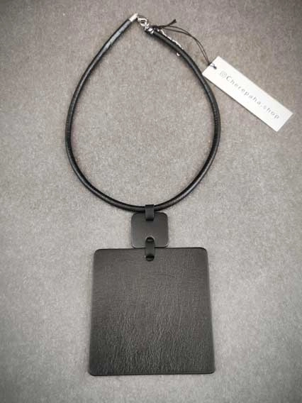 Колье из кожи КВАДРАТ чёрный арт 25901